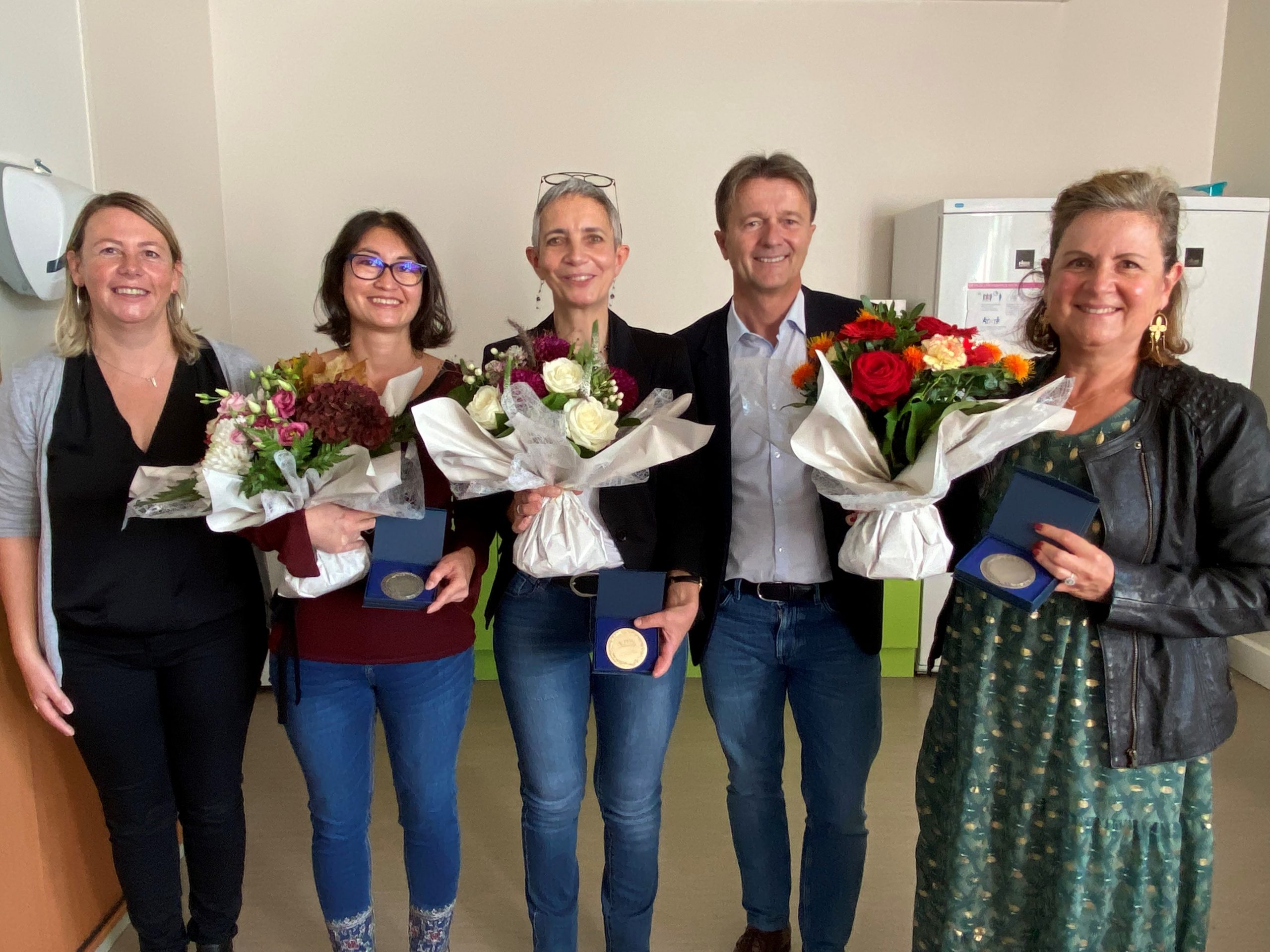 Récemment dans plusieurs établissements et services (Louise Weiss, Résidom, Les Alizés, L’Accueil), les salariés ont reçu de la part des membres de la direction générale, la médaille d’ancienneté du Groupe ACPPA.
