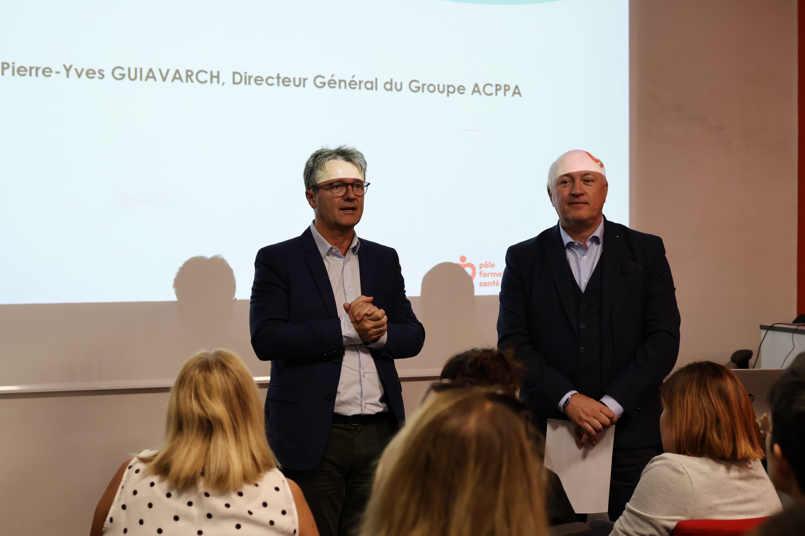 « La formation dans les filières de soins et médicales est extrêmement importante pour nous. Vous êtes précieux vis-à-vis des résidents et ces formations apportent un enrichissement et une professionnalisation des professionnels pour la bienveillance. Vous êtes au cœur de la prise en charge du résident. Bon vent dans votre nouvel élan, nouvelle carrière et encore une fois, bravo ! » Pierre-Yves GUIAVARCH, Directeur Général du Groupe ACPPA.