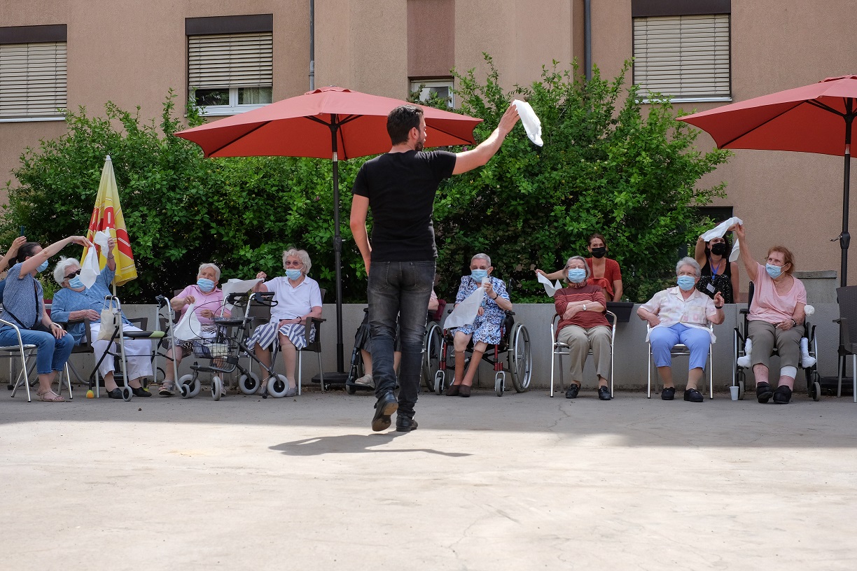 Quatre compagnies se sont ainsi succédées du 31 mai au 23 juin 2021 au sein de la résidence pour permettre à nos aînés de découvrir leurs spectacles en toute exclusivité.