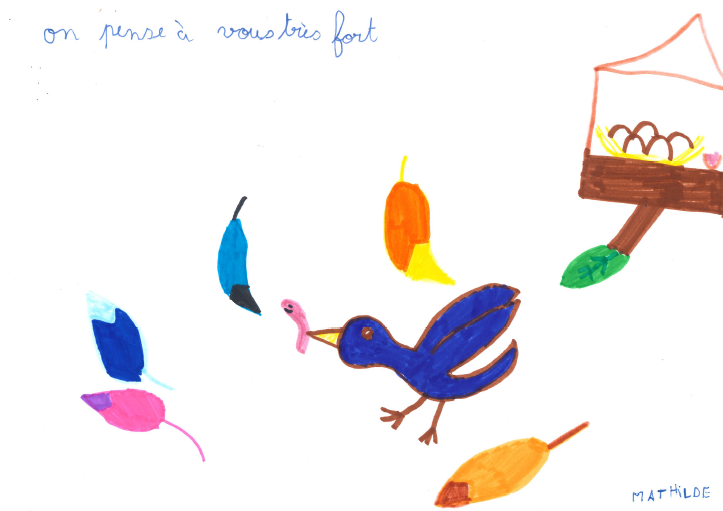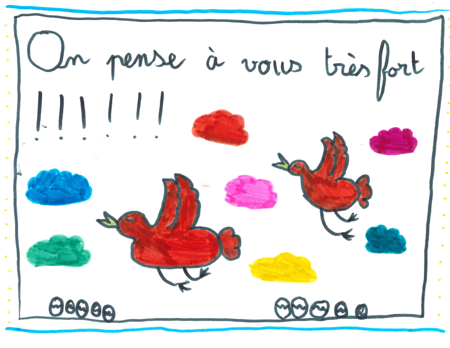 Cette semaine, nous souhaitons vous faire partager des dessins envoyés par des enfants aux résidents de notre établissement du Garezin (Francheville), résultat d’un partenariat intergénérationnel mis en place avec la Directrice de l’Ecole du Bourg de la commune.