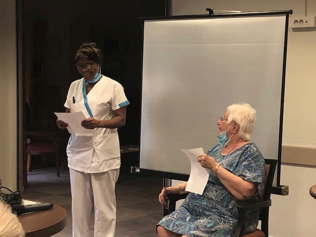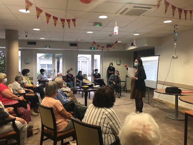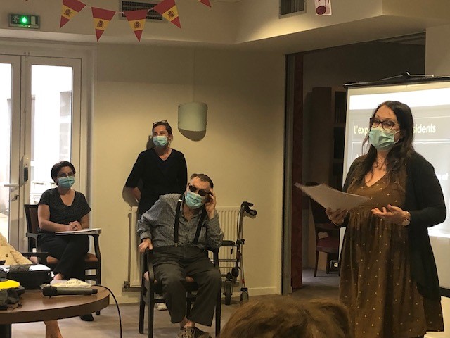 La présentation de son analyse s’est suivie d’un moment d’échanges très intéressant avec l’ensemble de son public. L’un des résidents infecté par la covid-19 très tôt lors de la première vague a évoqué ses trois mois d’hospitalisation et l’impact de l’isolement sur son moral. Des familles ont remercié les équipes sur l’accompagnement personnalisé qui a été permis pendant cette période et sur la possibilité de voir leurs parents, même de façon contrainte.