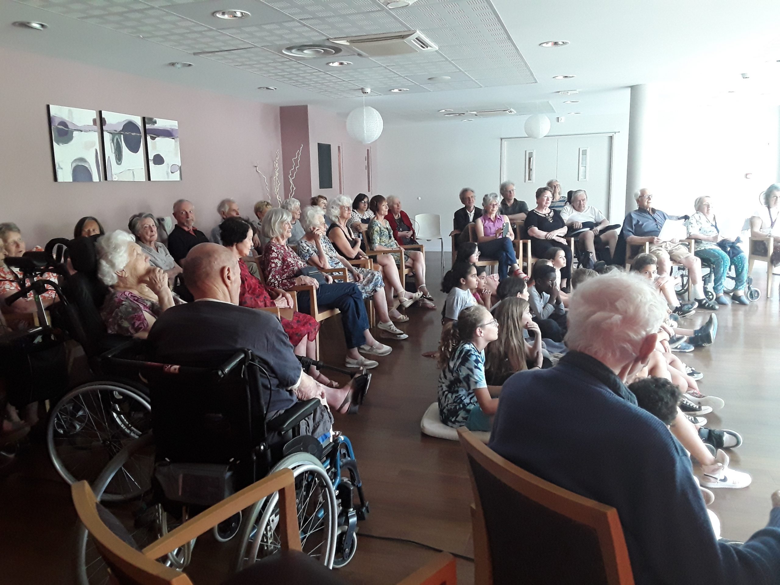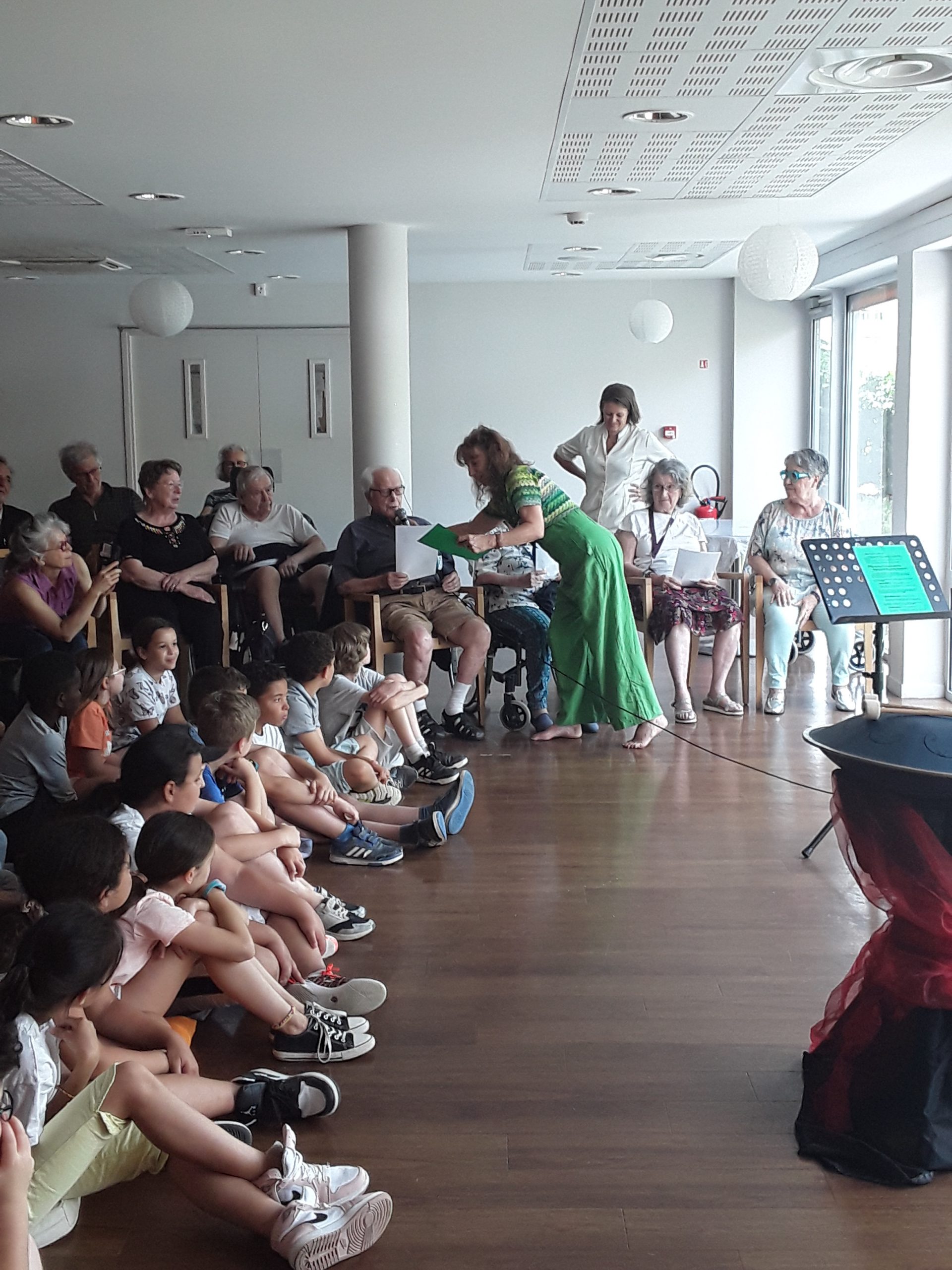 Après six mois de conception artistique très riche, les résidents ont eu à cœur de présenter leurs créations le mardi 27 juin 2023. A cette occasion, une soixantaine de personnes étaient réunis, parmi lesquelles les élèves d’une classe de CM1 de l’école Paul Chevalier, les résidents, les familles, les salariés ainsi que toute l’équipe MOMENTUM.