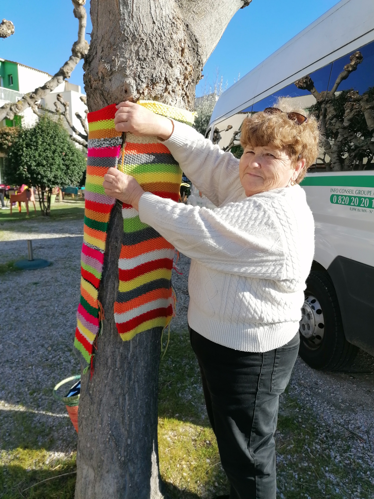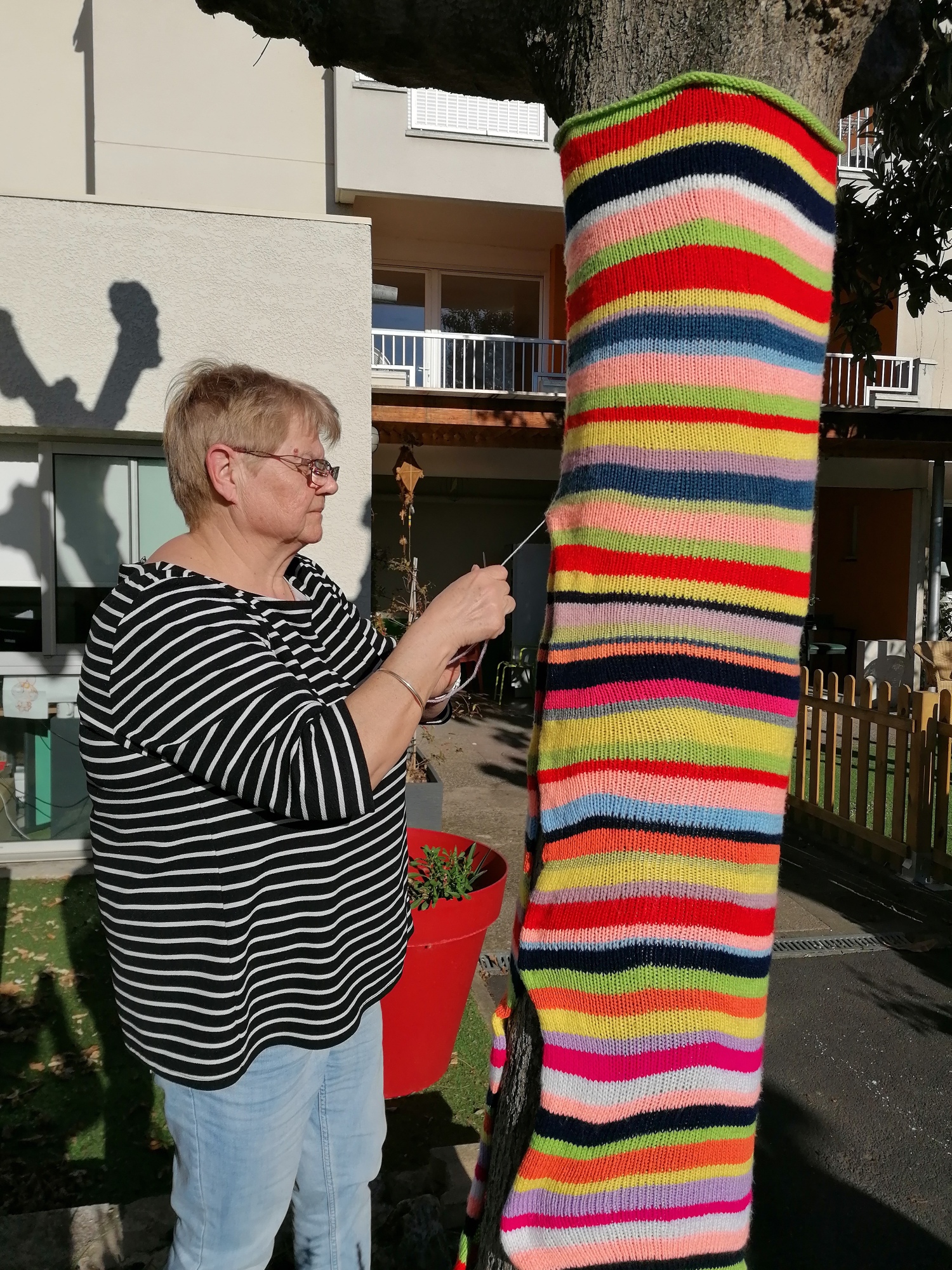 Mme P (résidente) : « Mais pourquoi tricoter pour les arbres, tu penses qu’ils ont froid l’hiver ? »