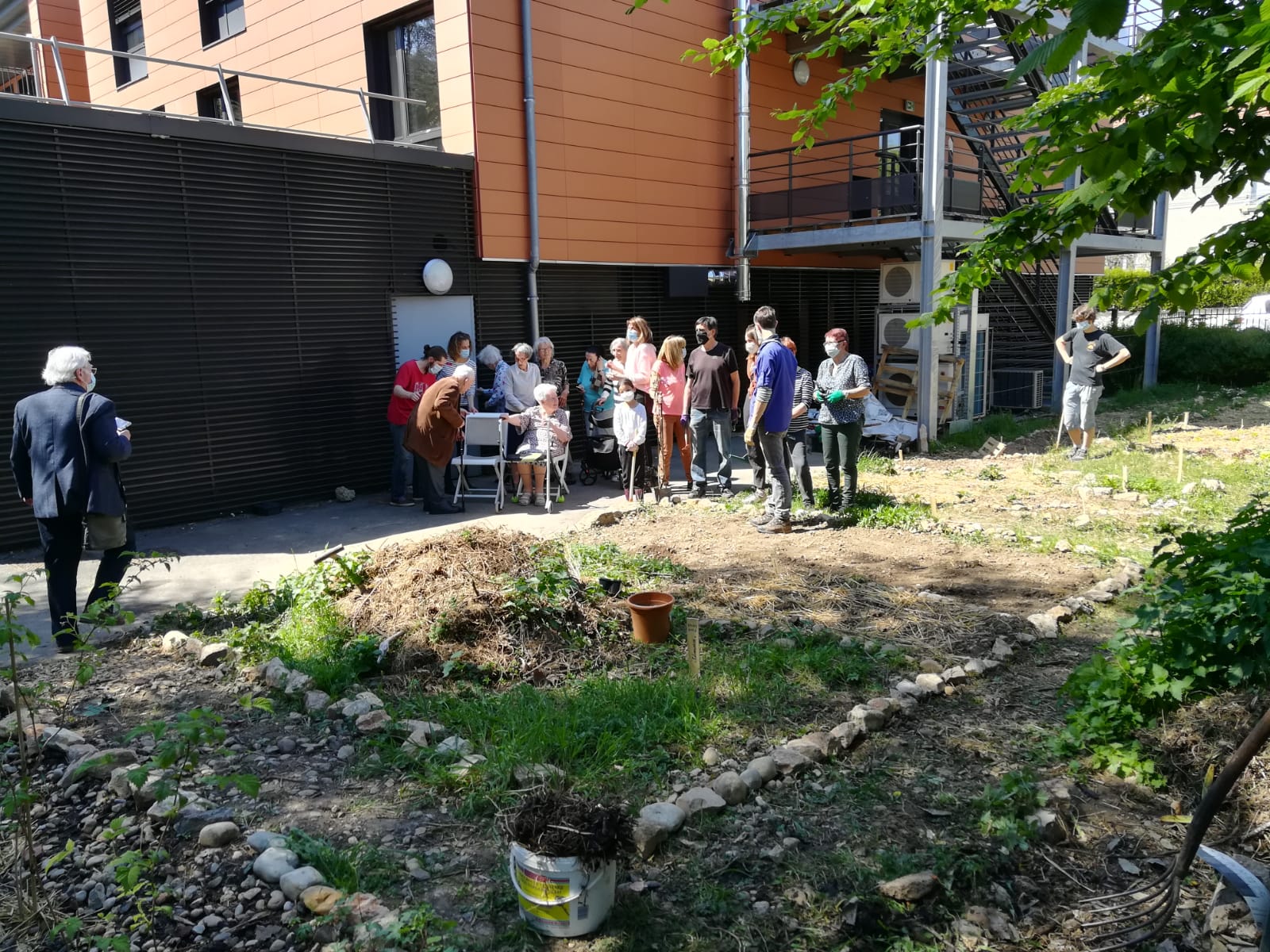Un nouvel espace de jardinage et de convivialité s’est installé dans le parc de notre maison de Constant à Monchat. Né de la volonté de sa Directrice, Patricia Sasse, et de son équipe, d’intégrer une démarche RSO (Responsabilité Sociétale des Organisations) au sein de l’EHPAD, ce projet est le parfait exemple d’une association réussie entre développement durable, rencontres intergénérationnelles et animation de quartier.