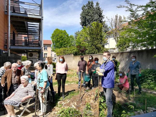 Avec l’arrivée des beaux jours, les résidents sont heureux et impatients de pouvoir se promener dans les allées et discuter avec les jardiniers bénévoles venus entretenir leur production légumière et fruitière.