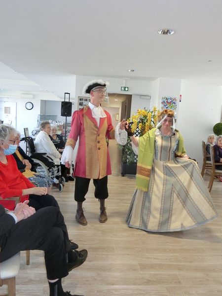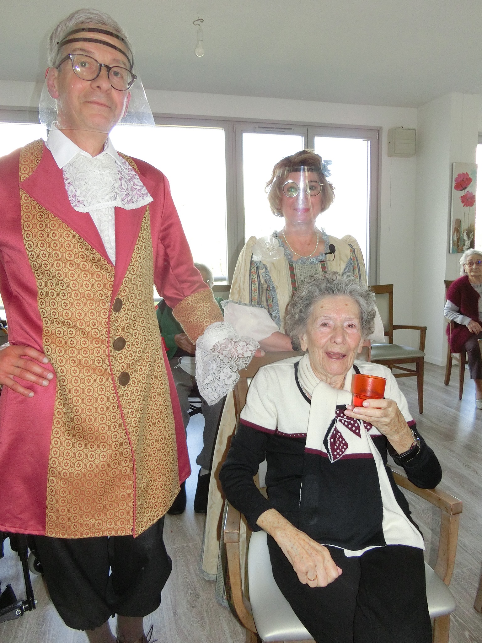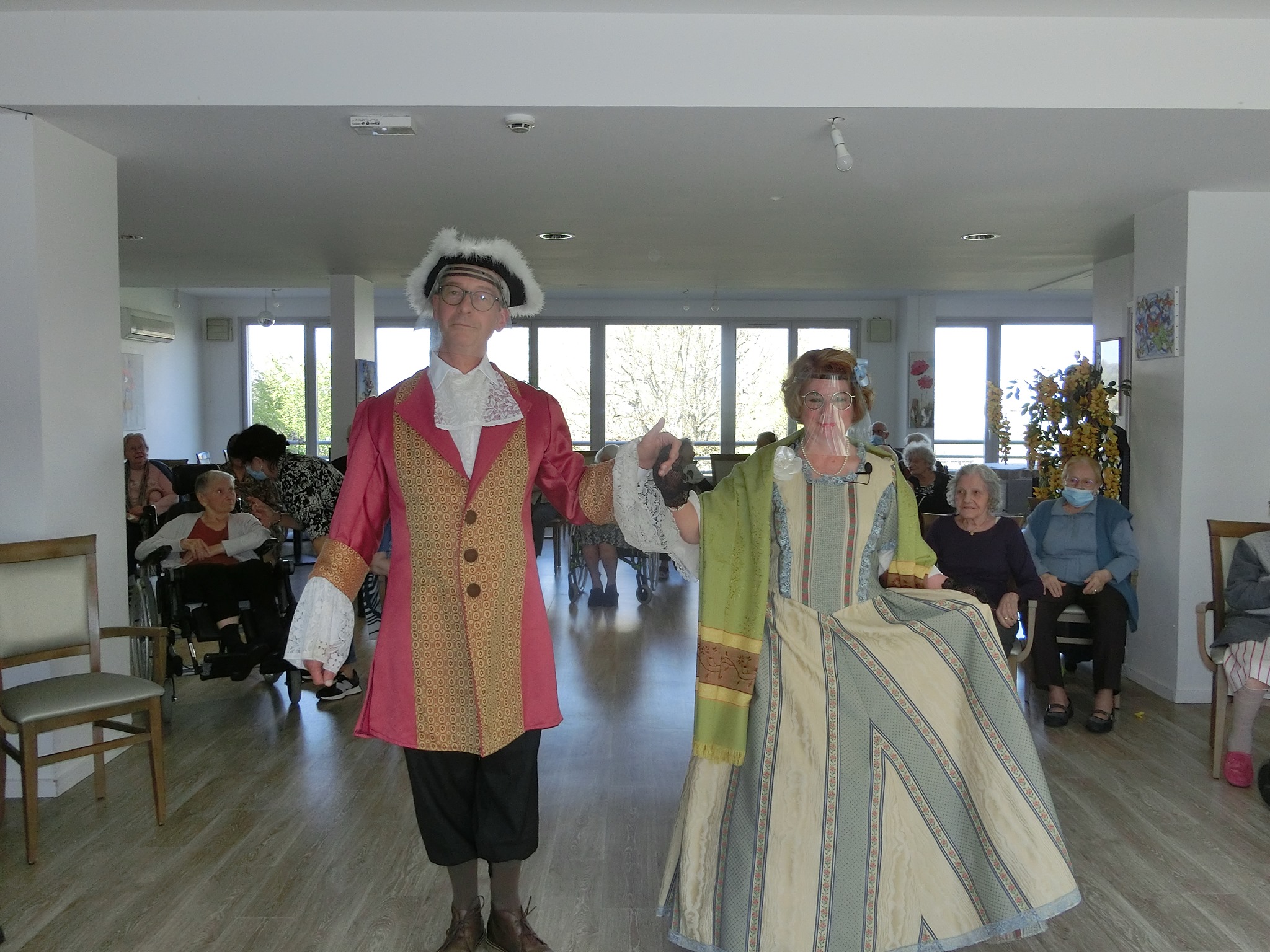 Vêtus de costumes rappelant l’époque de La Fontaine ou de Molière, la fille d’une résidente et son époux, ont offert aux résidents du Rocher un après-midi de poésie, un véritable hymne à la nature. Comptines et poèmes se sont gaiement succédé, entrecoupés d’airs de musique classique. De beaux instants d’émotion et de rêve, des mots qui restent longtemps à l’oreille …