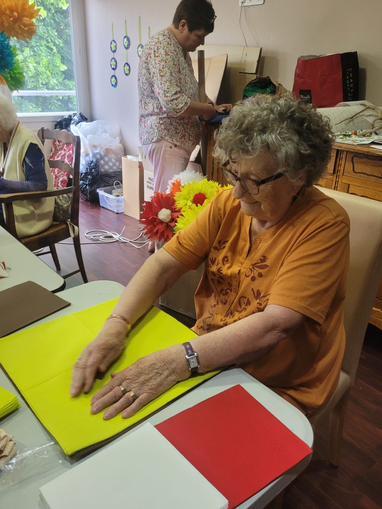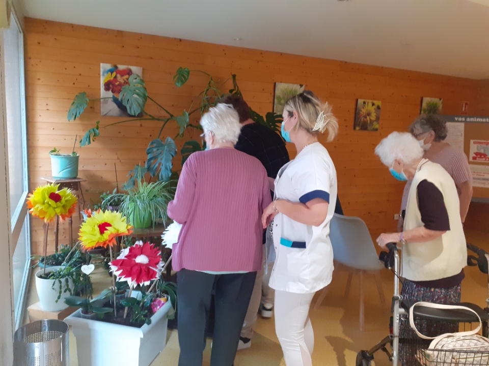 On remarque qu’au-delà de l’implication et la créativité de chacun, ce thème permet des échanges et du partage entre résidents, mais aussi des échanges avec les familles, les visiteurs, les intervenants à domicile qui réagissent à notre travail et nos expositions. »