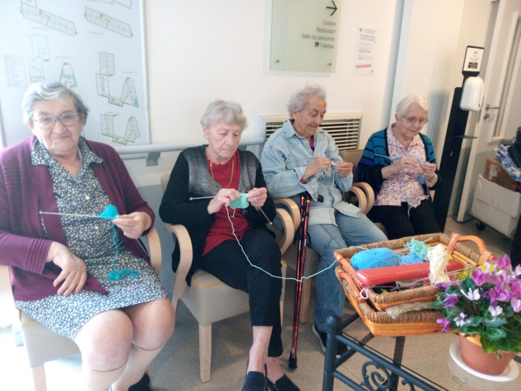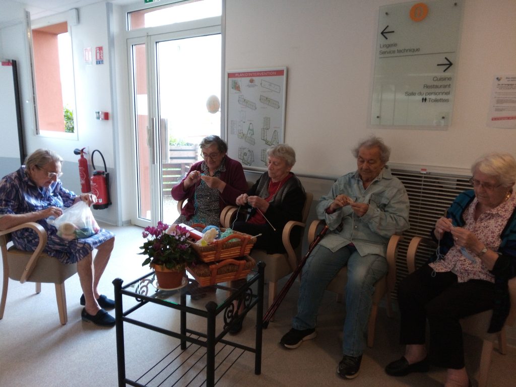 Cette année, pour la première fois à l’EHPAD les Agapanthes, les résidents ont mis la main à la pâte pour participer à ce projet ! Une fois par semaine pendant deux mois, avec l’aide de l’animatrice Annie, une dizaine de résidentes volontaires se sont rassemblées pour tricoter des petits bonnets pour l’association. Lesdites résidentes ont tricoté la base carrée des bonnets, puis Annie les a mis en forme et leur a ajouté des pompons pour la touche finale. Le personnel et les familles des résidents ont également été sollicités pour confectionner des petits bonnets. En tout, c’est 80 bonnets qui ont été fabriqués et donnés aux Petits frères des pauvres !