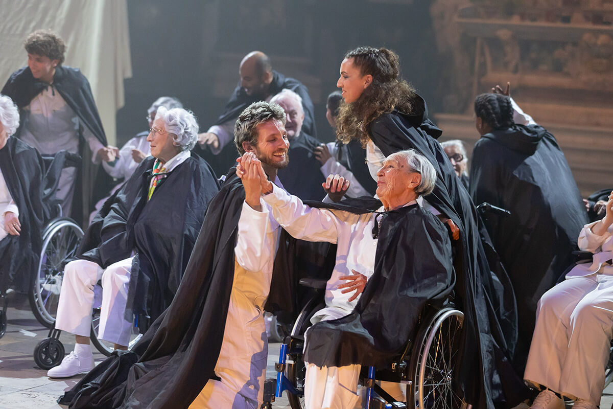 Cette soirée n’était pas un spectacle comme les autres. Sur scène, près de 30 interprètes : des résident·e·s de nos Ehpad – dont certain·e·s âgé·e·s de plus de 90 ans et en perte d’autonomie –, des soignant·e·s, des danseur·se·s professionnel·le·s et des musicien·ne·s ont offert une performance qui a bouleversé le public.