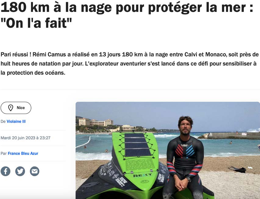 Au départ, le défi était pour Rémi de réaliser 180 kilomètres pour rejoindre Monaco. Après 14 jours d’efforts intenses, l’aventurier est arrivé le 20 juin dernier. « Après mon tour de France à la nage en 2018, certains m’ont dit : « la Méditerranée, c’est calme, tu verras ». Ce n’est pas tout à fait ça. On a tout eu, elle était déchaînée ! » a confié l’aventurier au moment de son arrivée officielle sur la plage du Larvotto.