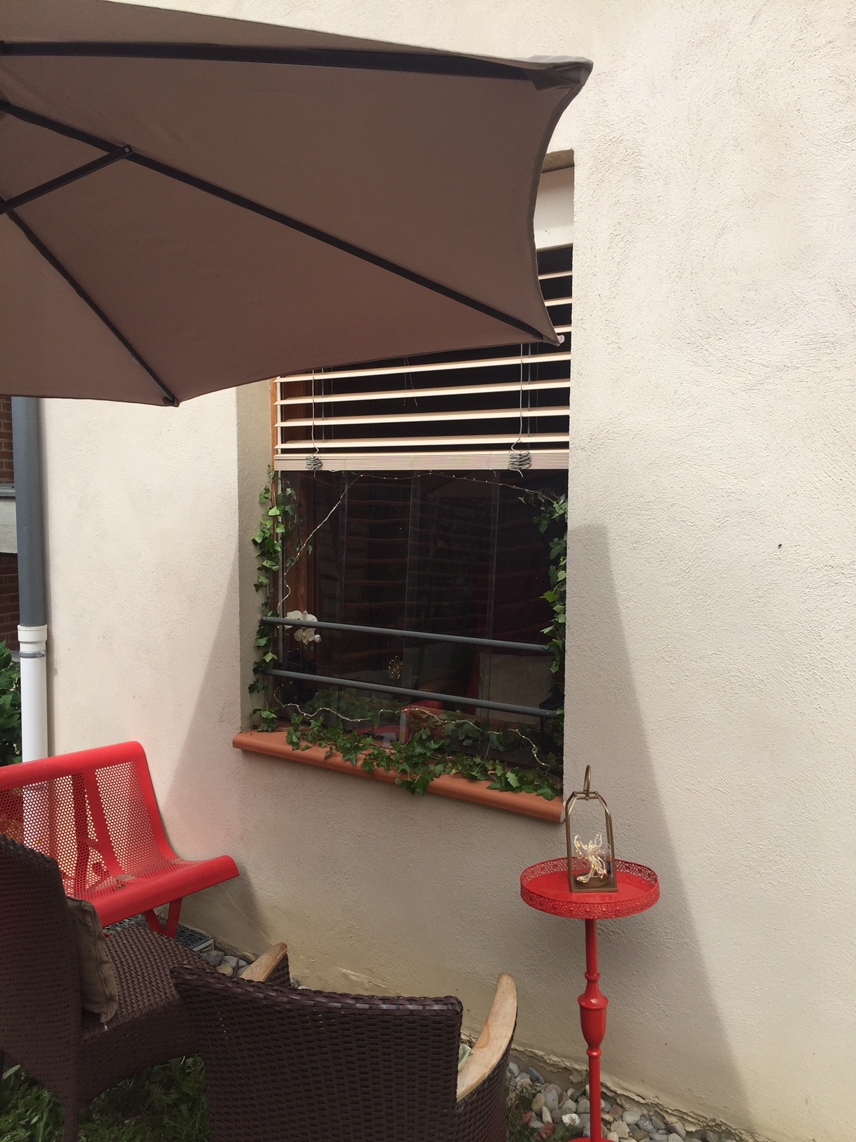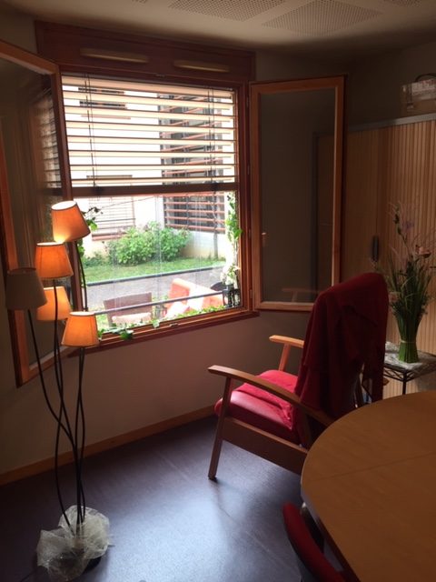 Puis, il a fallu créer une ambiance chaleureuse et cela a été possible grâce à l’art-thérapeute, la psychomotricienne, l’animatrice et la secrétaire qui ont travaillé ensemble pour créer un lieu « cocooning » avec un parasol, du lierre, des coussins de couleurs, des bougies phosphorescentes, des fauteuils…