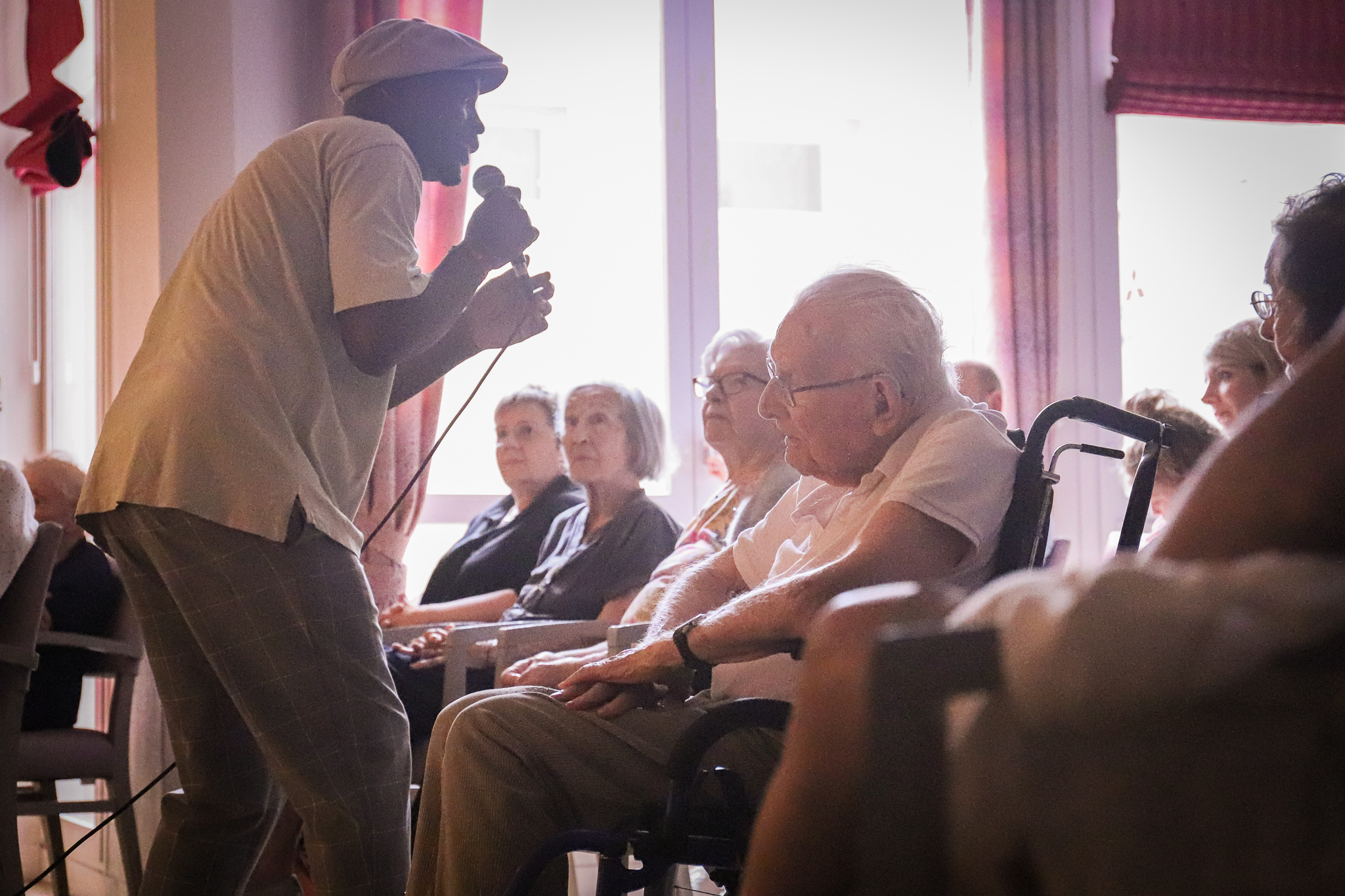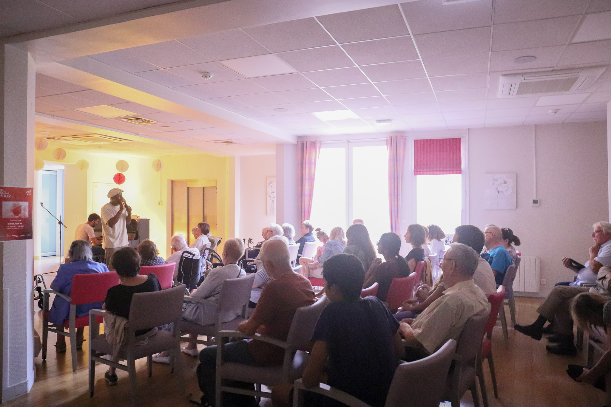 La semaine dernière, la Résidence La Colline de la Soie à Lyon a vibré au rythme du jazz lors d’un événement exceptionnel dans le cadre EHPADs EN JAZZ porté par le réseau régional Jazz(s) Auvergne Rhône-Alpes avec le soutien de la Métropole de Lyon. L’artiste en vedette était Gyslain.N, accompagné au piano par Rémy Tchango, dont l’univers oscille entre poésie et prose, teinté d’influences urbaines.