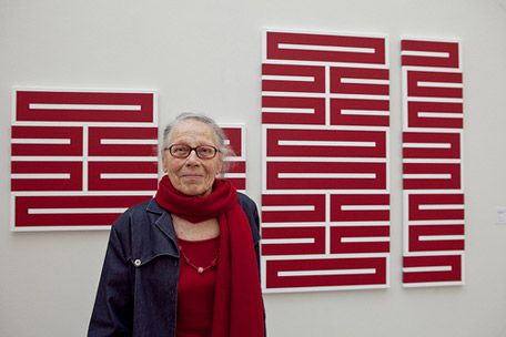 A l’âge de 12 ans, elle s’intéresse à la peinture en observant son oncle peindre les dimanches. Elle étudie ensuite pendant 5 ans à l’école des Beaux-Arts de Budapest puis arrive à Paris en 1947. Son style de peinture était assimilé au courant de l’abstraction géométrique (forme d’expression artistique ayant recours à l’utilisation de formes géométrique et de couleurs disposées en aplats dans un espace bidimensionnel). A travers ses peintures, Vera Molnar cherche à « créer des œuvres de manière consciente » : son travail ne tente pas de supprimer toutes les traces de subjectivité, mais s’élabore grâce au sens, qui sont, selon l’artiste, à l’origine même de la création. Ses premières œuvres appartiennent encore au courant abstrait et minimaliste. Puis, en 1968, elle devient l’une des pionnières de l’utilisation de l’ordinateur dans la création artistique, un outil qui, selon ses termes, lui permet de « se libérer d’un héritage classique sclérosé » tout en conservant la pleine maîtrise de ses compositions.