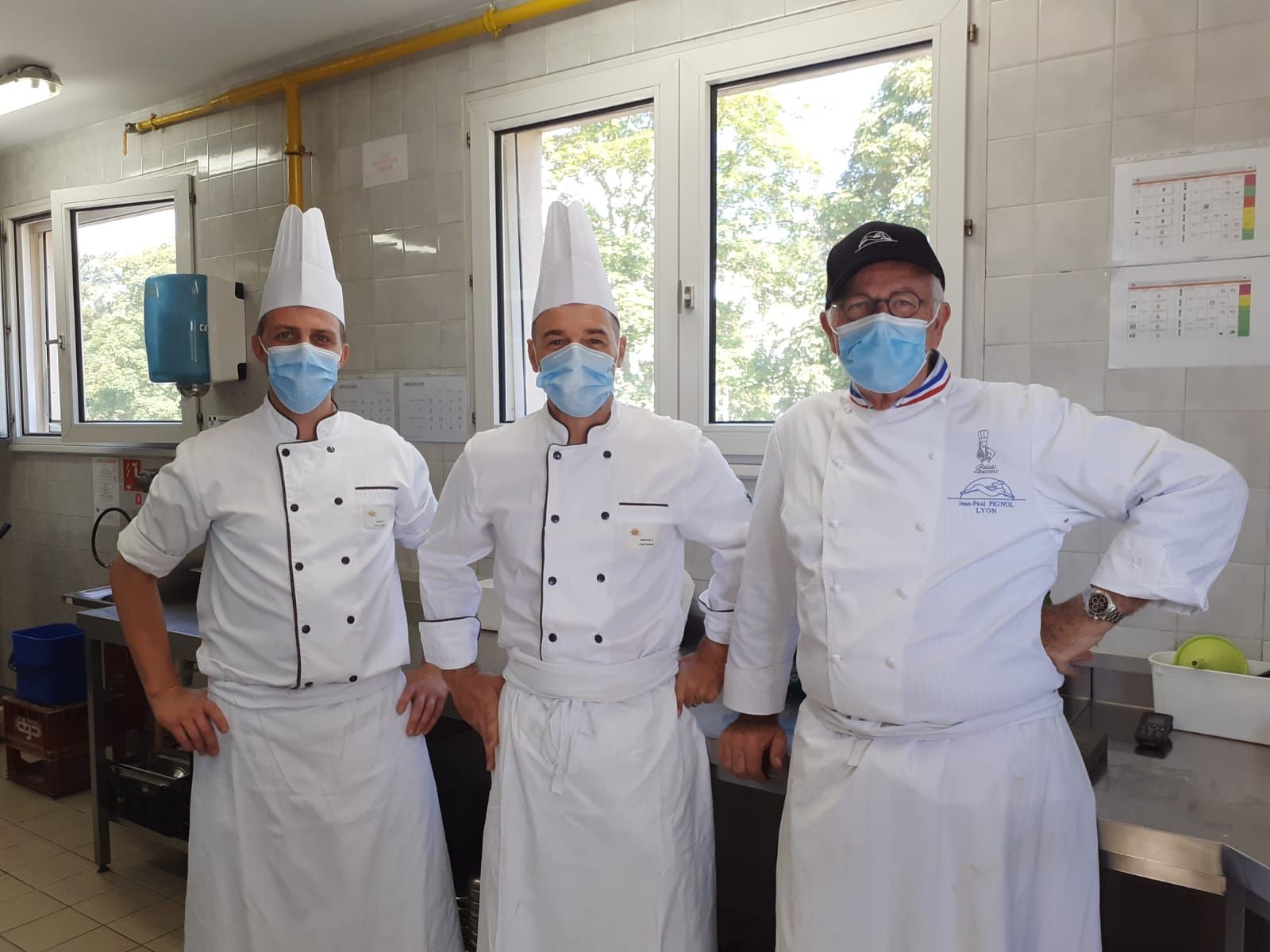 Le 31 mai dernier, le Parrain, Jean-Paul PIGNOL, s’est rendu aux Volubilis pour cuisiner et pâtisser un dessert signature « Le Moelleux des Gones » pour le plus grand plaisir de nos résidents. Un dessert que le Chef Arnaud FURNON et notre Responsable Restauration Patrick Sorbier, ont également décliné en texture modifiée (le principe du challenge !) pour que tous les résidents puissent en profiter avec une saveur identique.