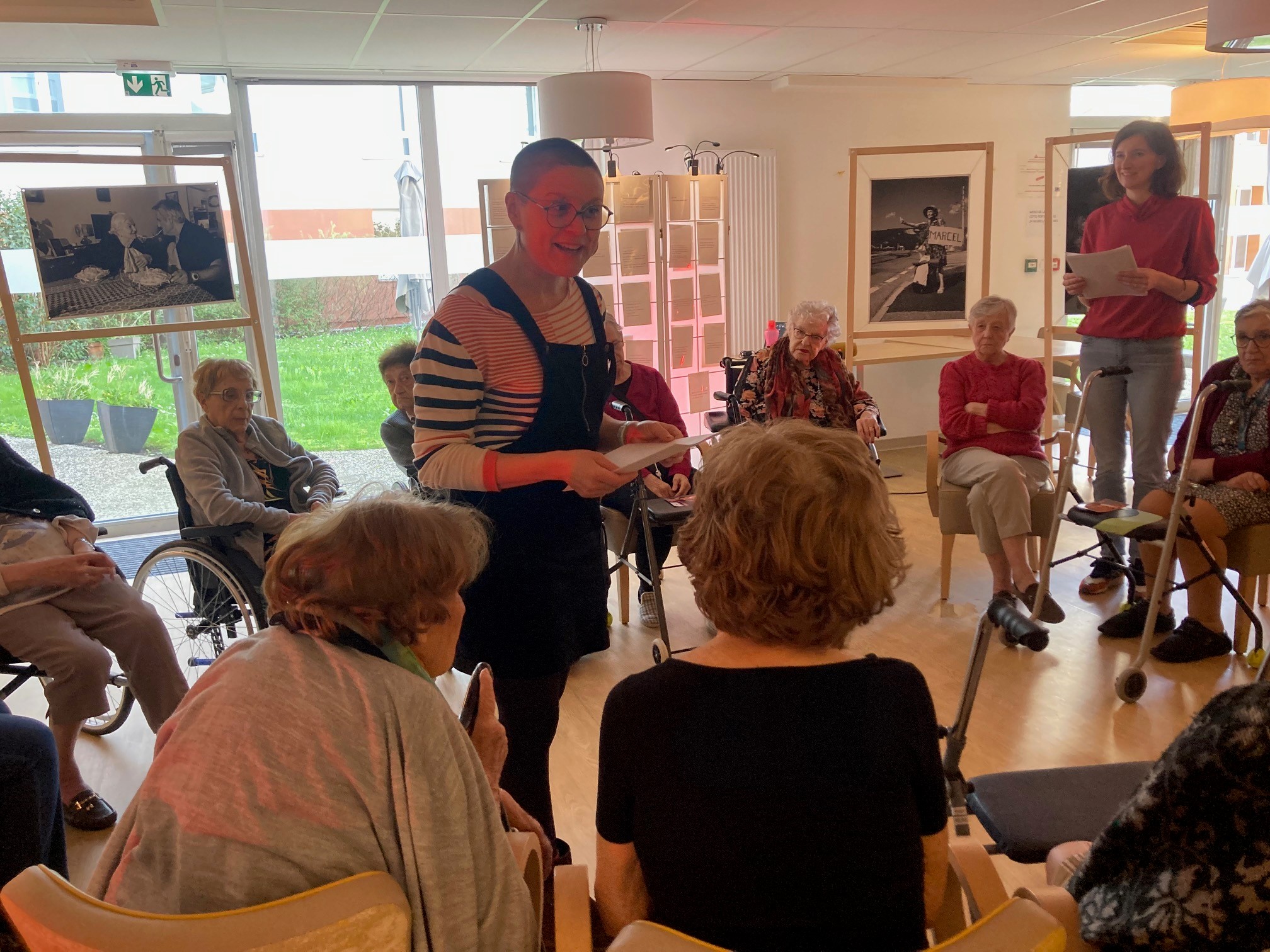 J’ai bien aimé ce projet. J’ai tout aimé : le décor et les échanges. – Mme D., Résidente de l’EHPAD.